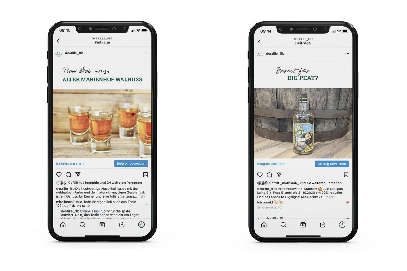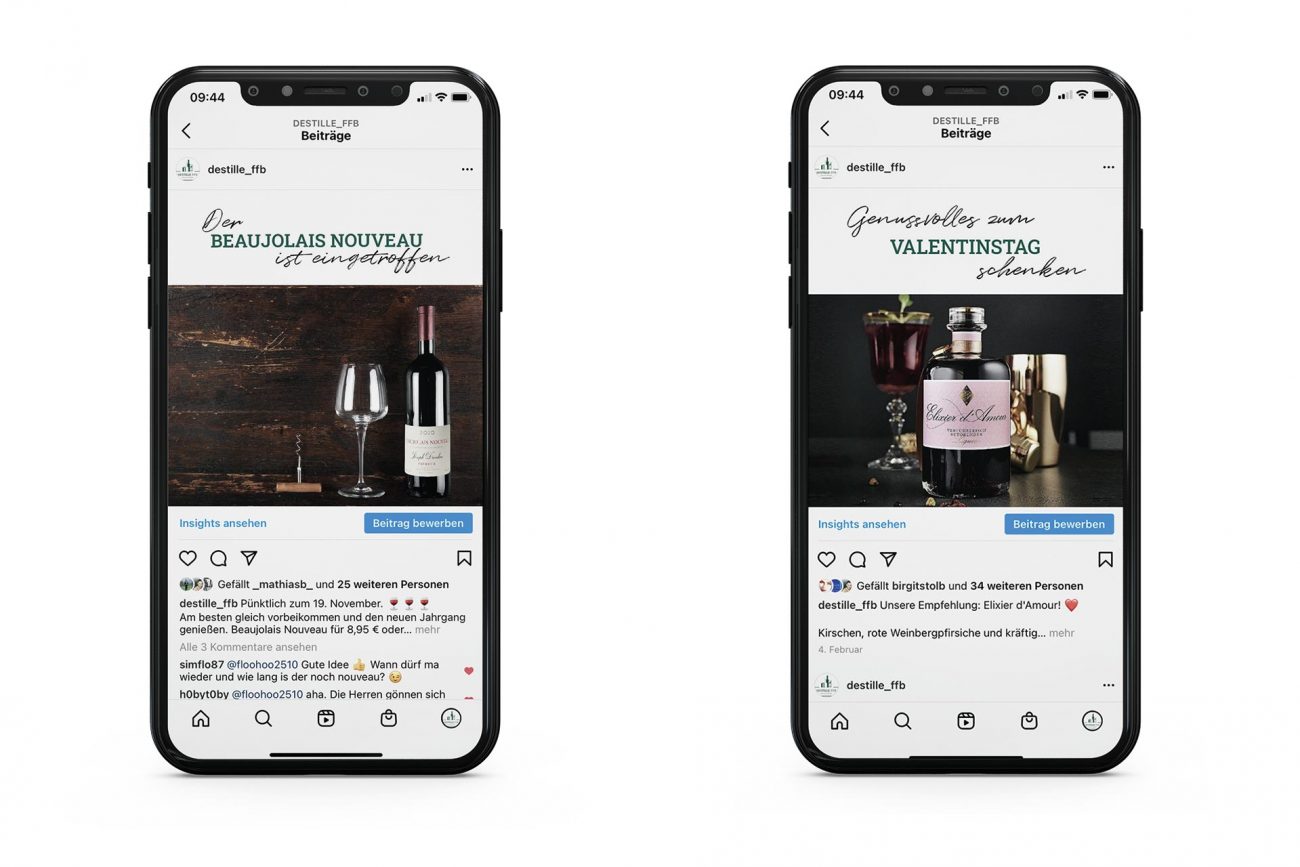 Mediaplanung und Erstellung regelmäßiger Posts für die DESTILLE-FFB auf Instagram und Facebook.